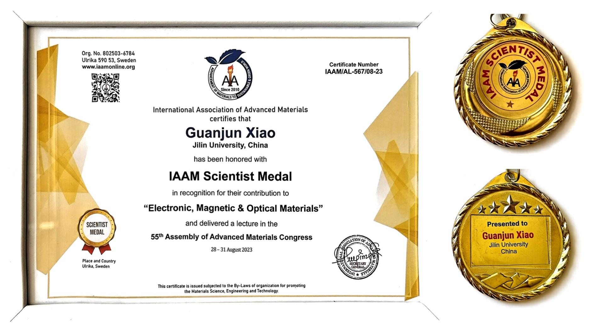 国际先进材料学会(IAAM)是全球先进材料领域著名国际性学术组织,总部设在瑞典。该组织聚集了世界范围内材料科学与技术领域的优秀科学家,致力于为先进材料科学、工程和技术在世界范围内的快速发展提供高水平学术平台,现已发展成为材料科学领域各类学科领军人才的聚集地,目前拥有来自超过125个国家的80000多名会员,已成为材料与工程科学领域杰出科学家的聚集者和领导者。“IAAM Scientist Medal”是由国际先进材料学会根据研究人员近10年来在先进材料领域所做的工作在世界范围内进行提名和评选,最终授予在先进材料科学与技术领域做出重要贡献的研究人员,以表彰他们在专业领域取得的显著成就。